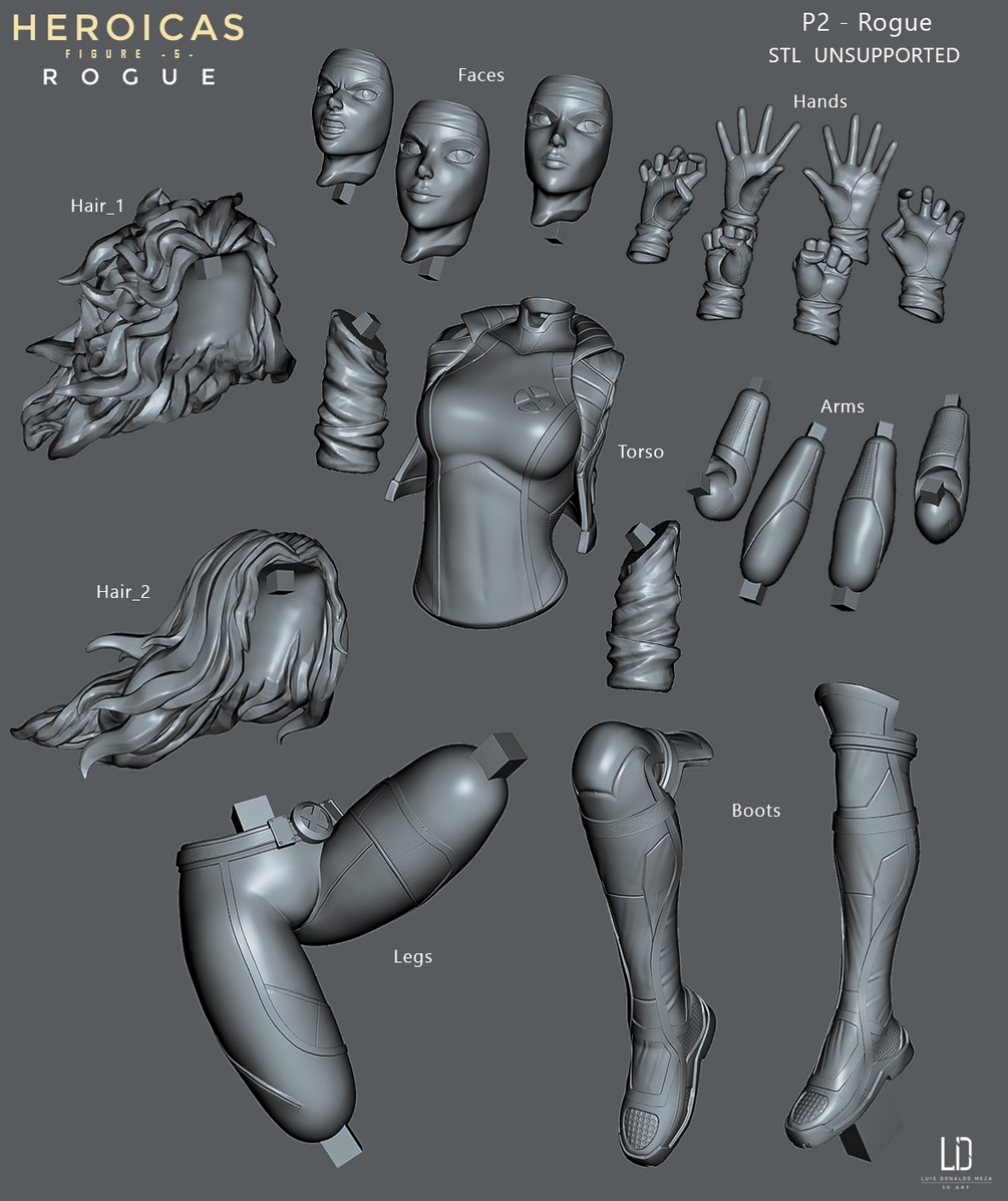You will get: 4 poses with interchangeable pieces. With more than 60 pieces. Face - arms - hands - Download Link -